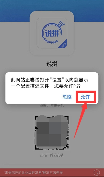 安装完成之后,点击“信任信任开发者”,将出现以下页面,点击“允许”